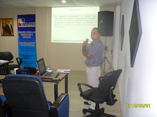 Ing. Maritza Aguirre (MSc en TIC's) - Integrante del proyecto realiza una exposición sobre avances en el área de recopilación y almacenamiento de Bases de datos |