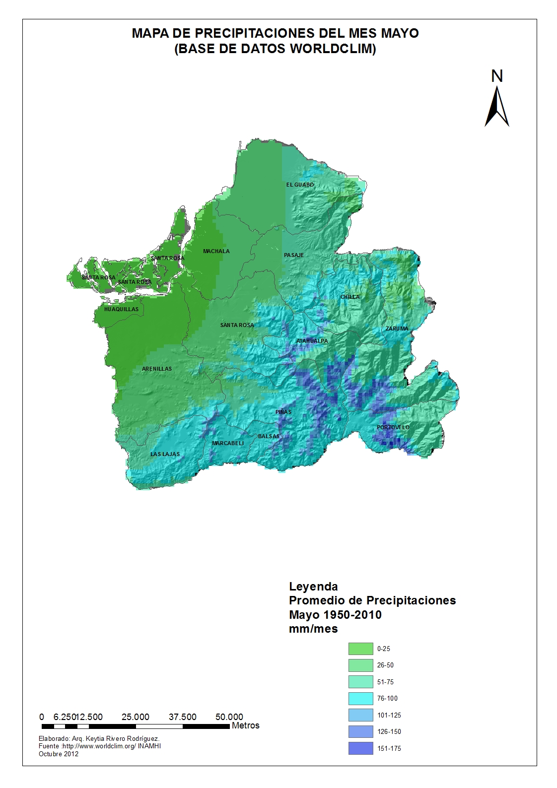 MAPAS DE PRECIPITACIONES DE EL ORO (BASES DE DATOS WORDCLIM 1950 -2010)